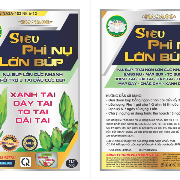 Phụ gia giúp PHÌ NỤ, LỚN BÚP THANH LONG và các phụ gia đặc biệt khác vừa đủ 100%.